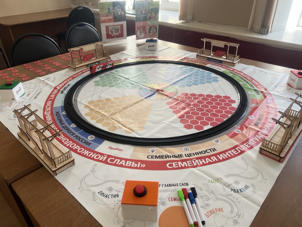 "Платформа № 7: Наследники железнодорожной славы" — это увлекательная настольная игра, которая погрузила работников ДКЖ г. Владивосток и представителей семей – участниц проекта в мир железнодорожного строительства и управления. С первых минут игроки окунулись в атмосферу стратегически насыщенной игры. В процессе участвовало четыре команды, которые доказывали право носить гордое звание "Наследников железнодорожной славы". Участникам было предложено проверить и расширить свои знания в области истории и достижения "РЖД". Тестовый запуск игры прошел удачно. Атмосфера азарта царила в этот день в клубе!