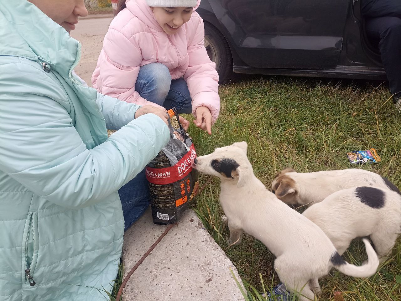 Семья Чаплинских привезла для них сухой корм и разные лакомства.