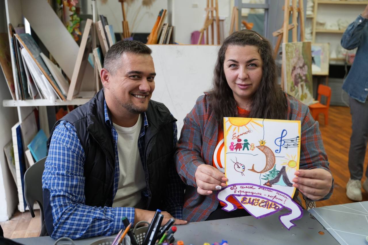 После теоретической части настало время практики. Зал превратился в большую художественную мастерскую. Семьи увлеченно обсуждали, какие качества для них самые важные, вспоминали увлечения, профессии и даже забавные семейные традиции, которые можно было бы отразить в символике.