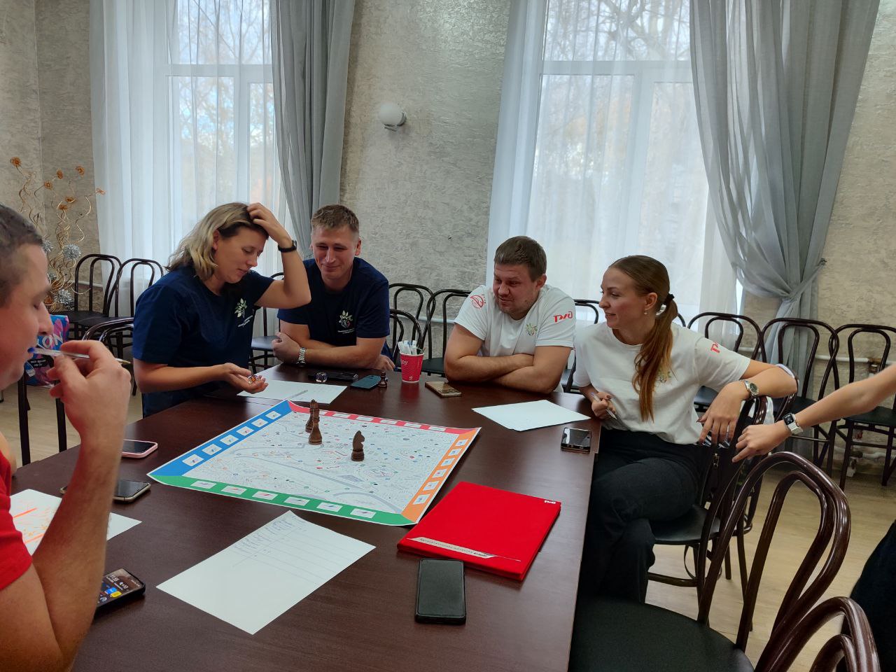 Цель была — первыми добраться до Платформы №7, собирая карточки железнодорожной славы, отвечая на вопросы и выполняя задания. В процессе игры команды придумывали названия, создавали фишки, а броски кубика определяли порядок ходов.
