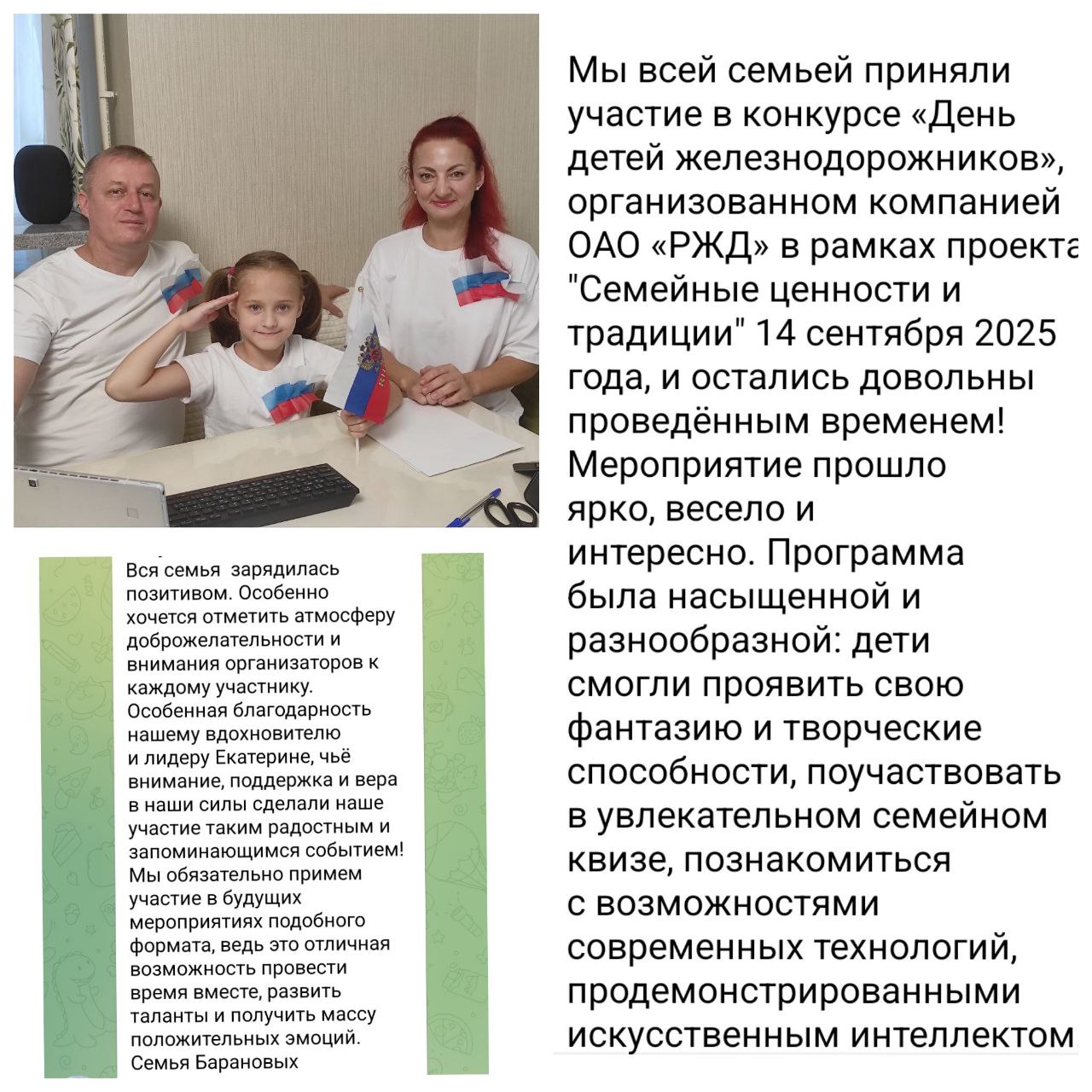 Выражаем искреннюю благодарность всем организаторам за создание такого замечательного праздника, который еще раз подчеркнул важность семейных ценностей и традиций в жизни каждого железнодорожника.