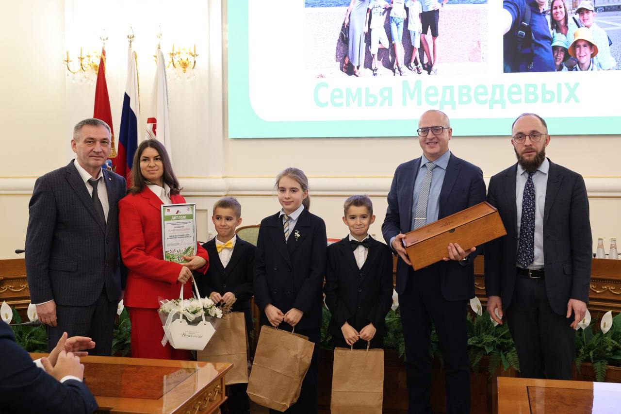 Семья Медведевых получила награду в номинации «Трудовая доблесть» за выдающиеся достижения в труде и самоотверженность в воспитании детей.
