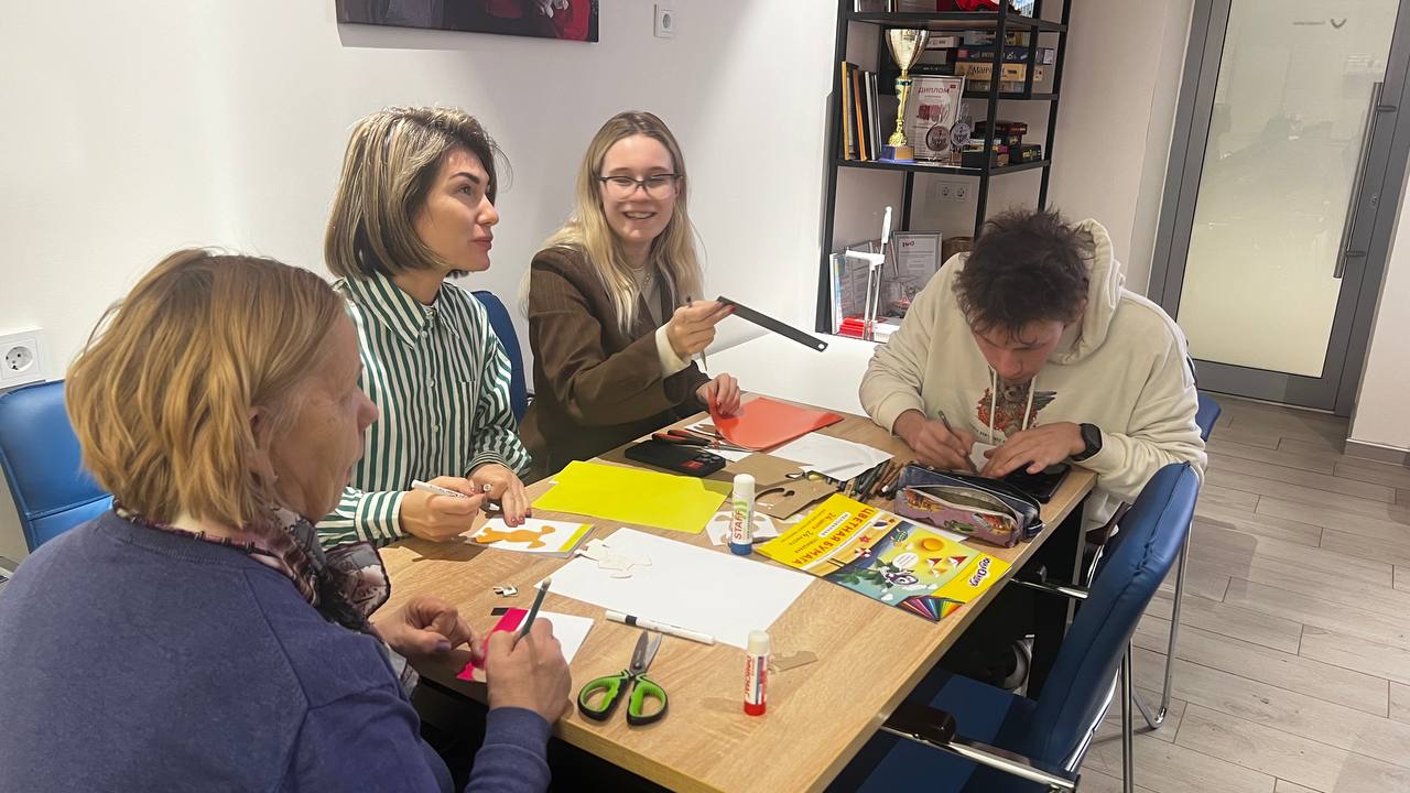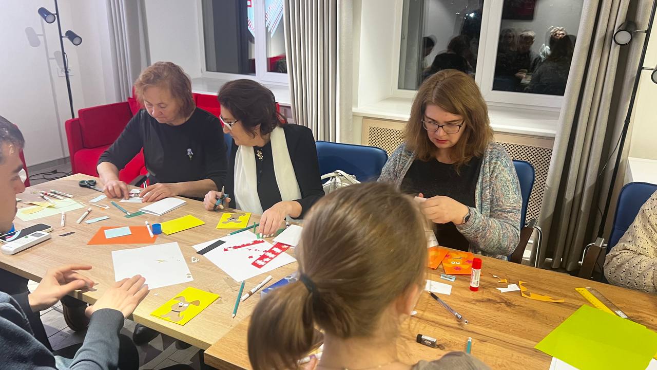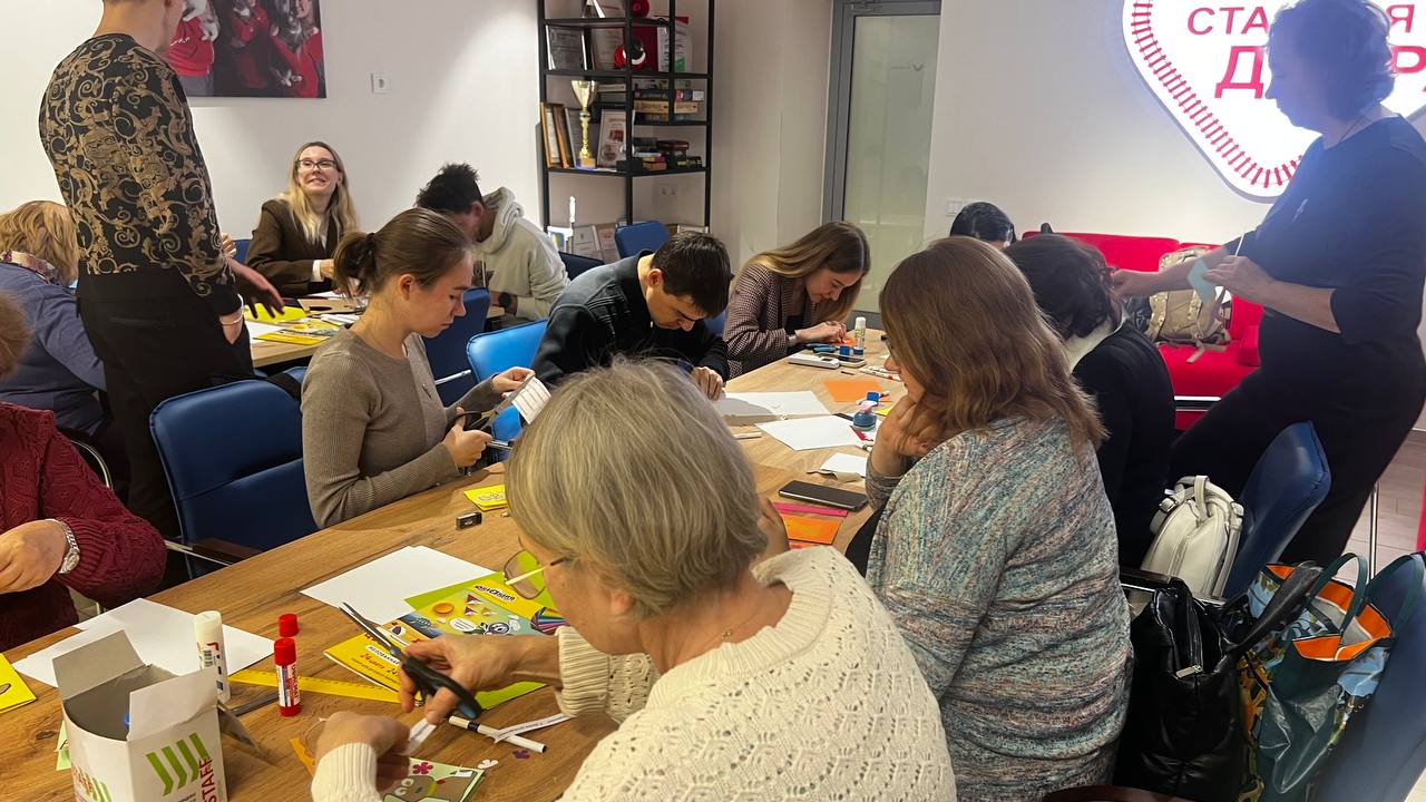 Участники проекта провели мастер-класс по созданию праздничных открыток. Эти открытки они отправят одиноким людям и больным детям.