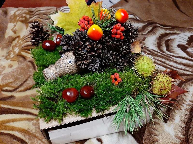 Шишки, листочки, крышечки от бутылок, бумага, трубочки, в ход пошли даже коробки из-под вещей