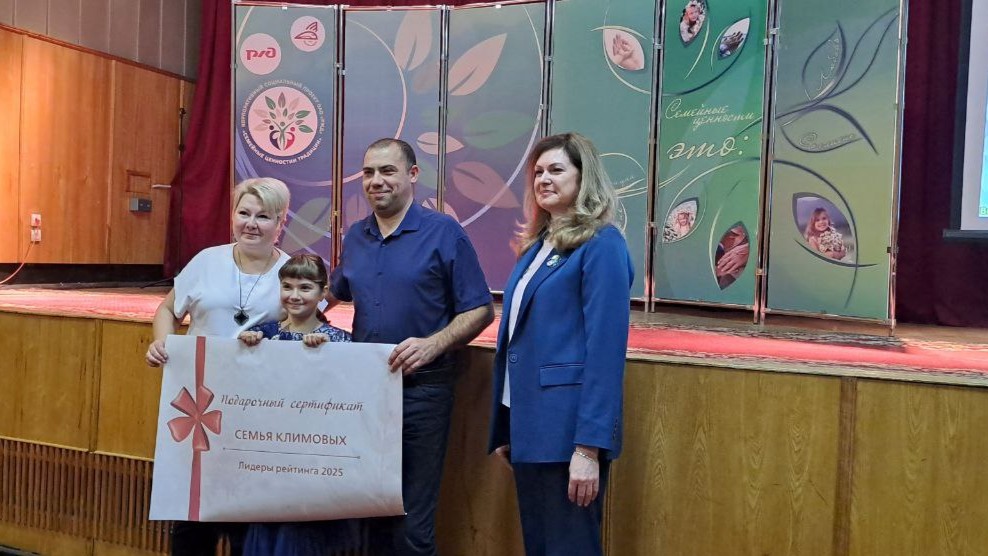 Сертификаты и памятные подарки победителям и активным участникам торжественно вручила Титаренко Елена Сергеевна — заместитель начальника Дирекции социальной сферы. Семья Климовых, победившая по итогу общего рейтинга, была награждена отдельным сертификатом. А в завершение торжественной части семьи выразили огромную благодарность лидеру за общение, мастер-классы и преподнесли ему памятный и очень неожиданный подарок — «Родословная Октябрьского клуба».