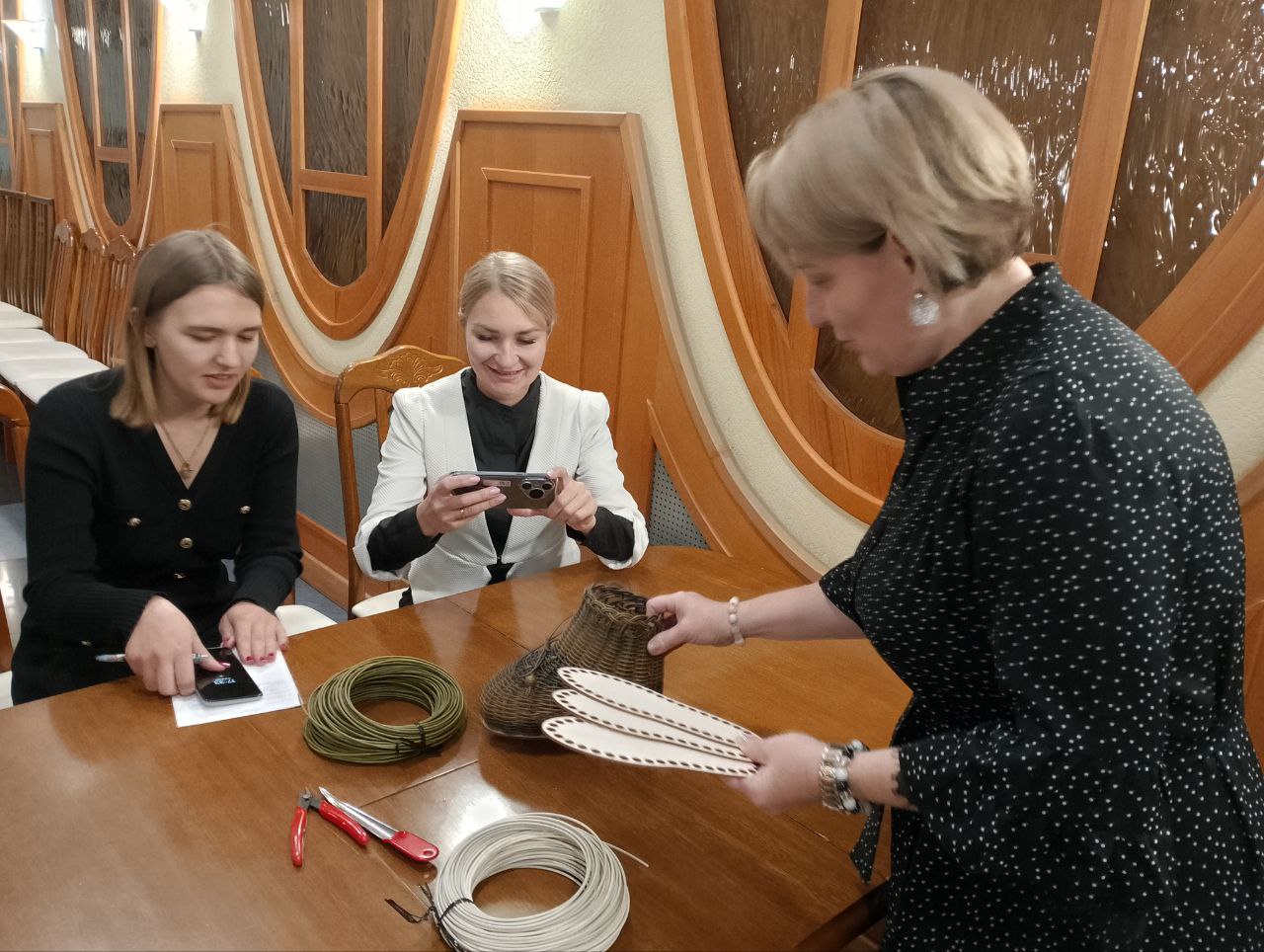 В начале мастер-класса участники узнали о свойствах искусственного ротанга и особенностях работы с ним. Для создания такого кашпо необходим набор материалов: гибкие синтетические прутья разных диаметров, специальный клей, формы для создания основы будущего кашпо.