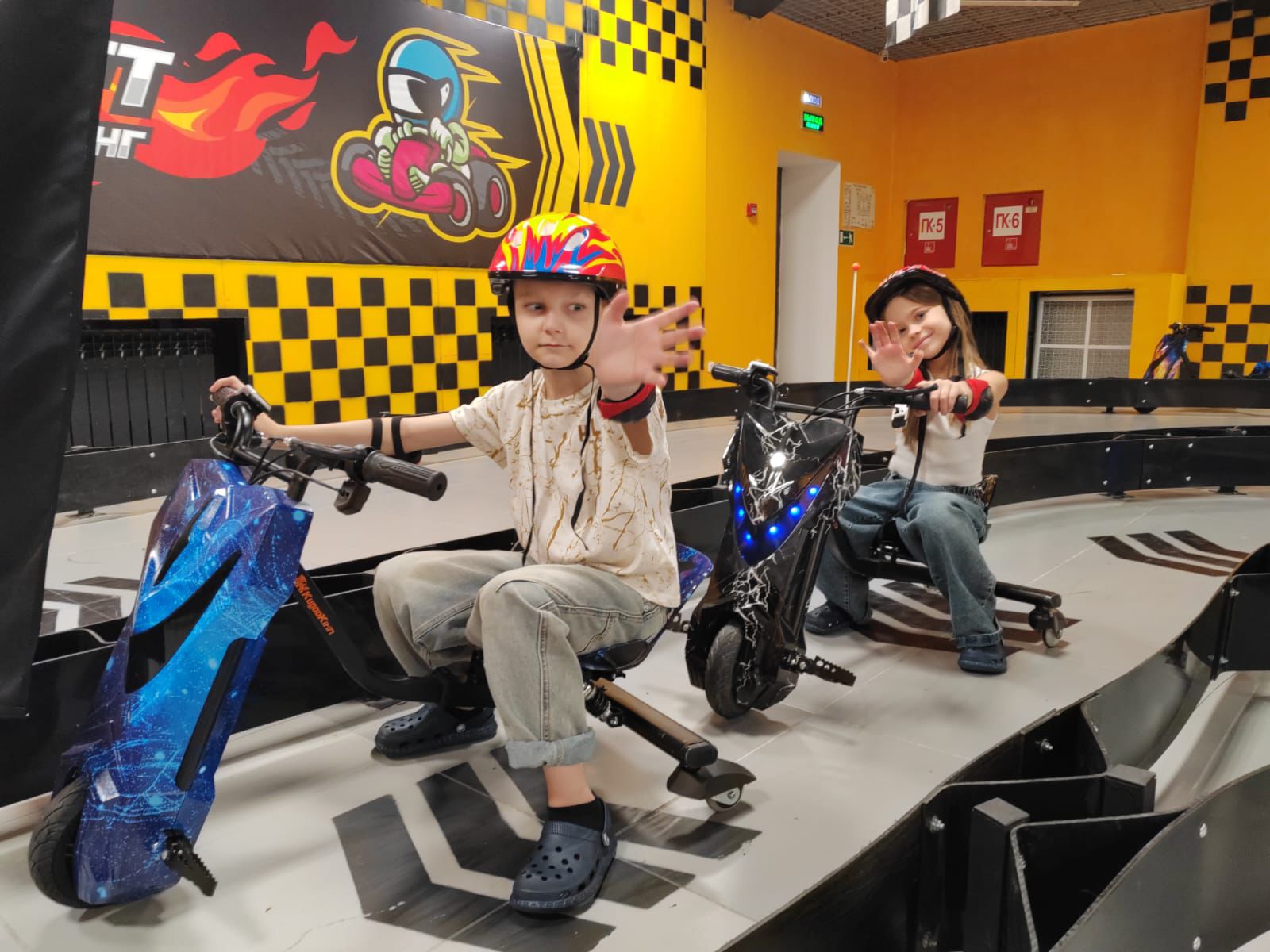 Безопасность прежде всего: Перед заездом — обязательный инструктаж и экипировка (шлем, перчатки). Сразу видно, что здесь следят за безопасностью, и это как родителю было очень спокойно.