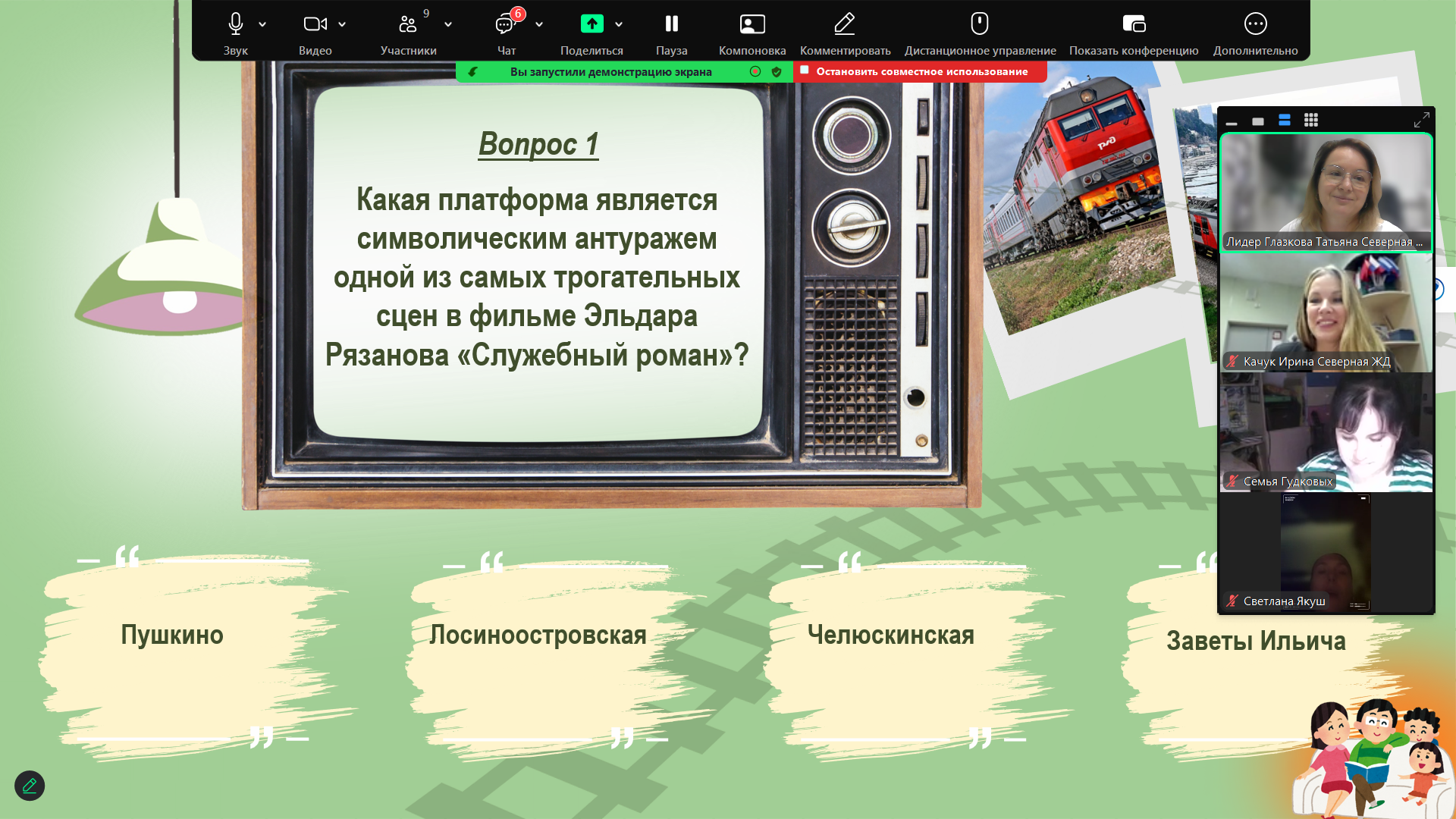 Во второй части участники отвечали на вопросы викторины. За каждый правильный ответ начислялись баллы. В ходе викторины семьи узнали много нового и интересного о железных дорогах.