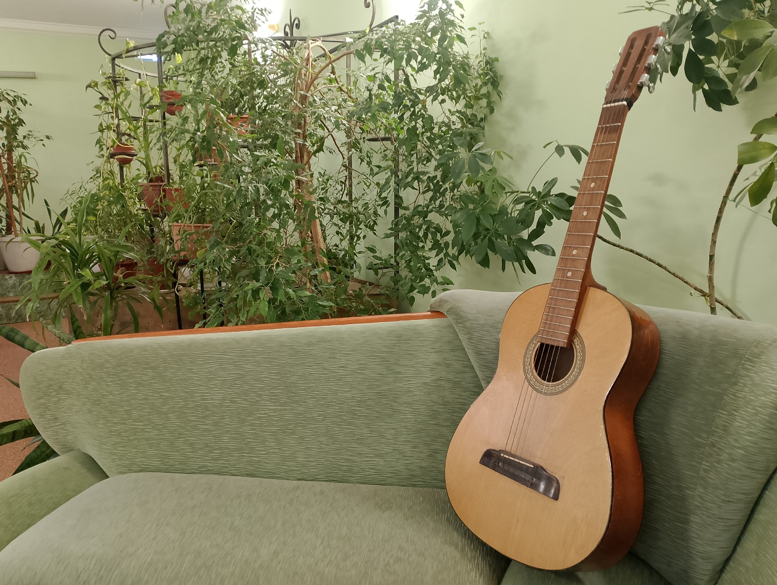 Семейный концерт среди зелени: участники проекта устроили душевный вечер с гитарой в зимнем саду.