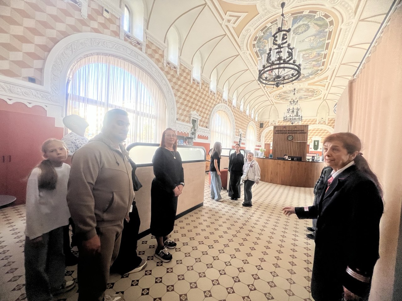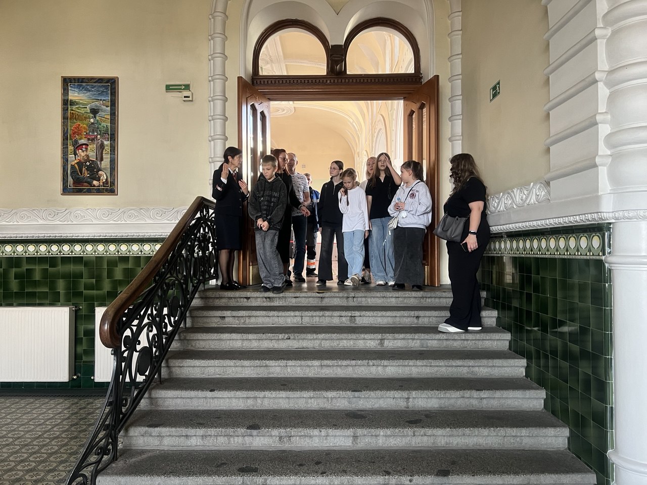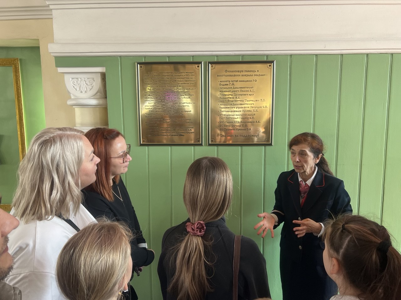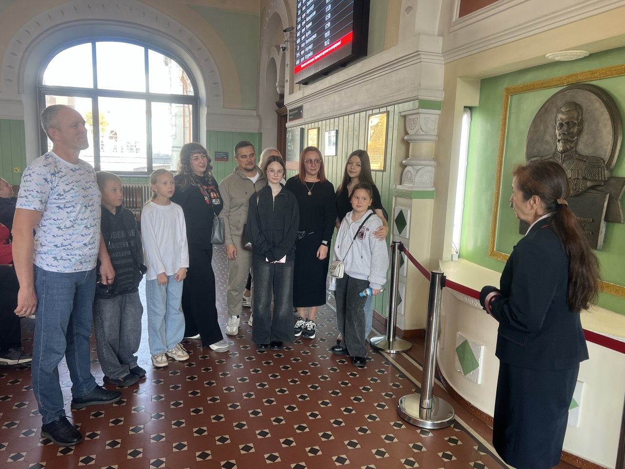 Экскурсию провела начальник вокзала Ирина Юрьевна Тарабарова, представитель железнодорожной династии. Она рассказала о великолепной архитектуре здания, которому уже более ста лет и о том, что первый камень в фундамент здание заложил будущий император Николай II и знаменитой стеле «9288», символизирующей протяженность самой длинной в мире железной дороги – Транссибирской магистрали, соединяющей Владивосток и Москву, а так же поделилась редкими историческими подробностями.