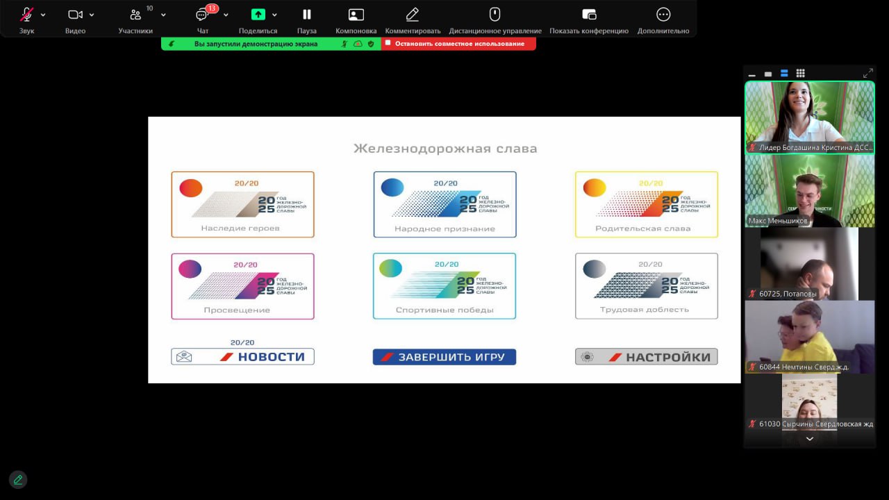 Участники игры ответили на интересные и нестандартные вопросы направлений Года железнодорожной славы: трудовая доблесть, наследие героев, спортивные победы, родительская слава, народное признание и просвещение. А также посмотрели, как выглядит настольная игра.