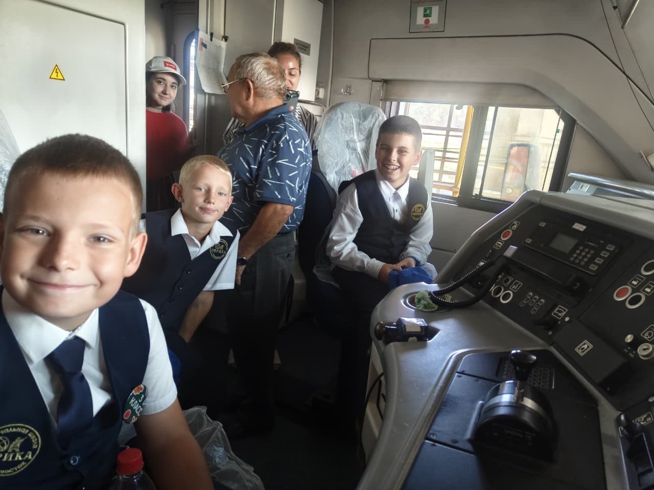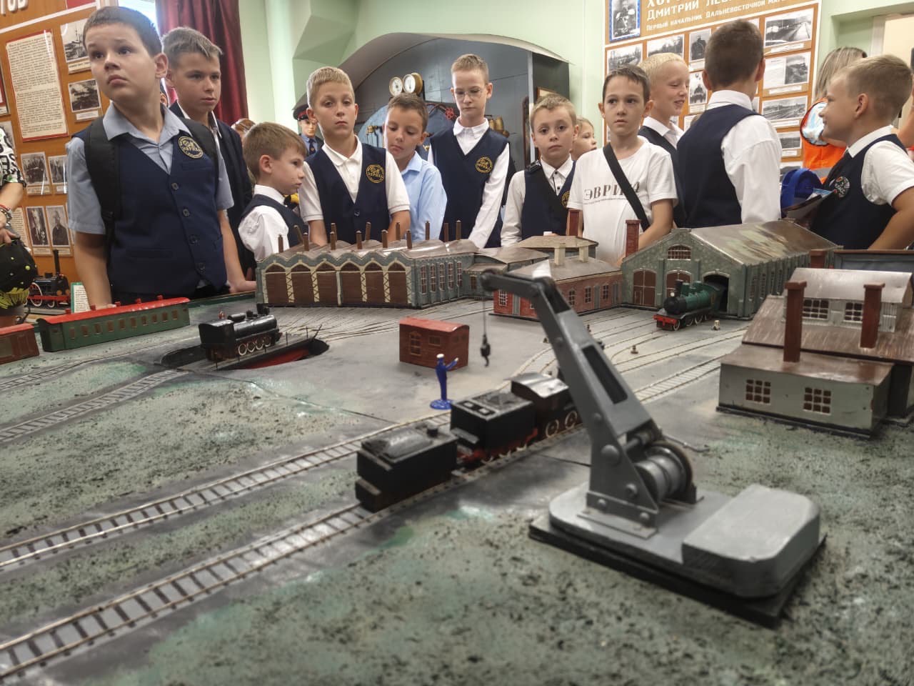 Следующим пунктом маршрута стало Моторвагонное депо Первае Речка. Хранитель 100-летнего музея, в прошлом машинист Александр Приходько, познакомил детей с историей старейшего предприятия Приморья. Кроме этого, ребята смогли своими глазами увидеть, как обслуживаются поезда, и узнать секреты работы железнодорожников, посидеть в кабине машиниста, потрогать руками приборы и механизмы, одеть железнодорожную форму.