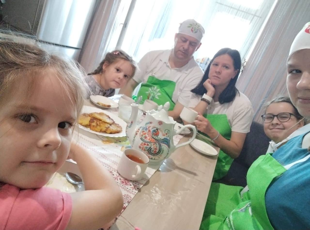 Мы познакомились с татарским блюдом Кыстыбей от семьи Черниенко, восхитились пельмешками от Криштопа, блинами от семей Финк и Мещеряковых, сочным шашлыком от Волковых, курником от семьи Галайда, Чувашской Чулпой от Ермаковых, попробовали Тако по -Уральски от Малашенко, жаркое в горшочках от Щукиных, узнали про Узбекский Ханум от Щаповых. Решение – создать книгу национальных блюд нашего Семейного клуба!