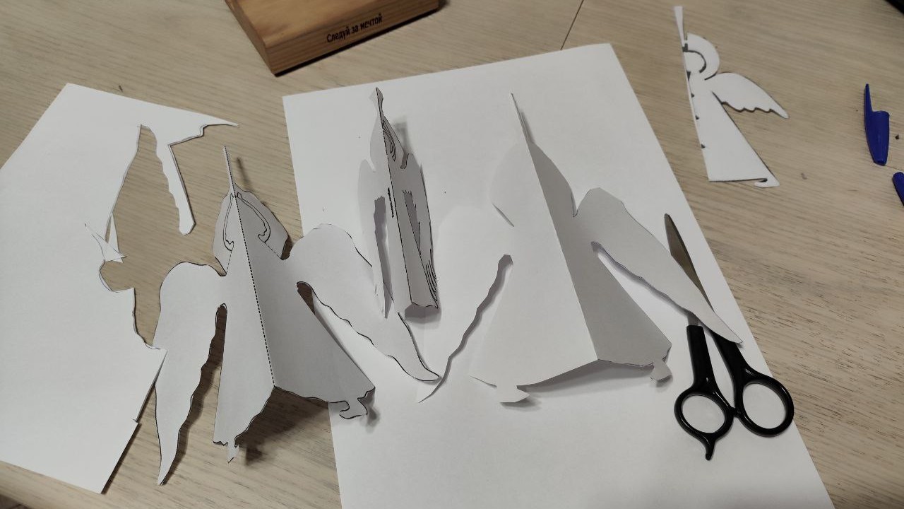 На мастер-классе участники смогли своими руками сделать бумажных ангелов с трубой или воздетыми к небу руками. Техника оказалась простой в исполнении, но при этом позволила создать настоящие произведения искусства.
