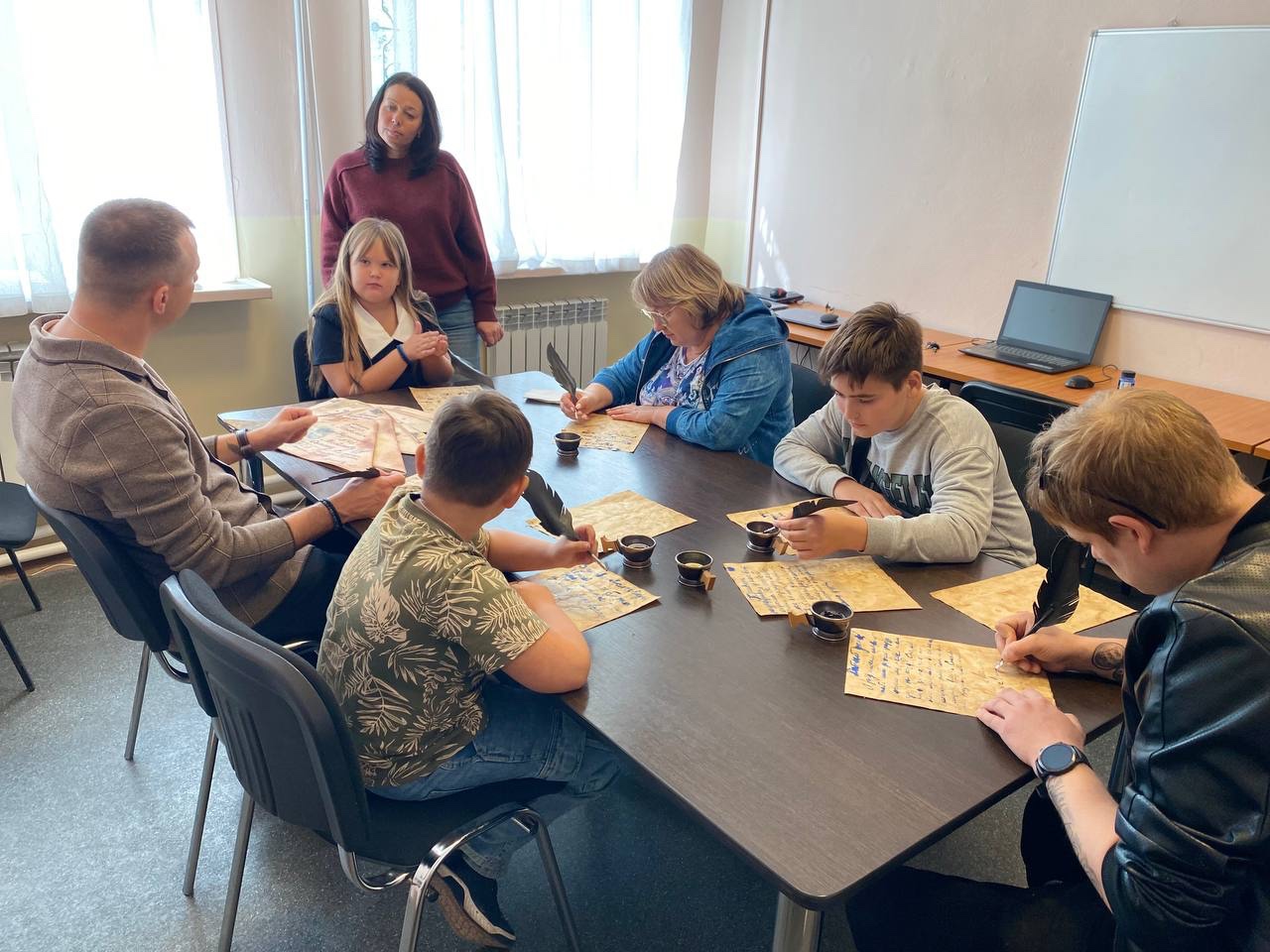 И тогда кабинет наполнился тишиной - той самой, в которой рождаются настоящие чувства. Дети склонялись над листами, стараясь вывести каждую букву аккуратно. Родители помогали детям подбирать слова, а также вспоминали имена, даты, истории, которые, казалось, уже забылись. Слёзы. Улыбки. Объятия. В этот момент история ожила.