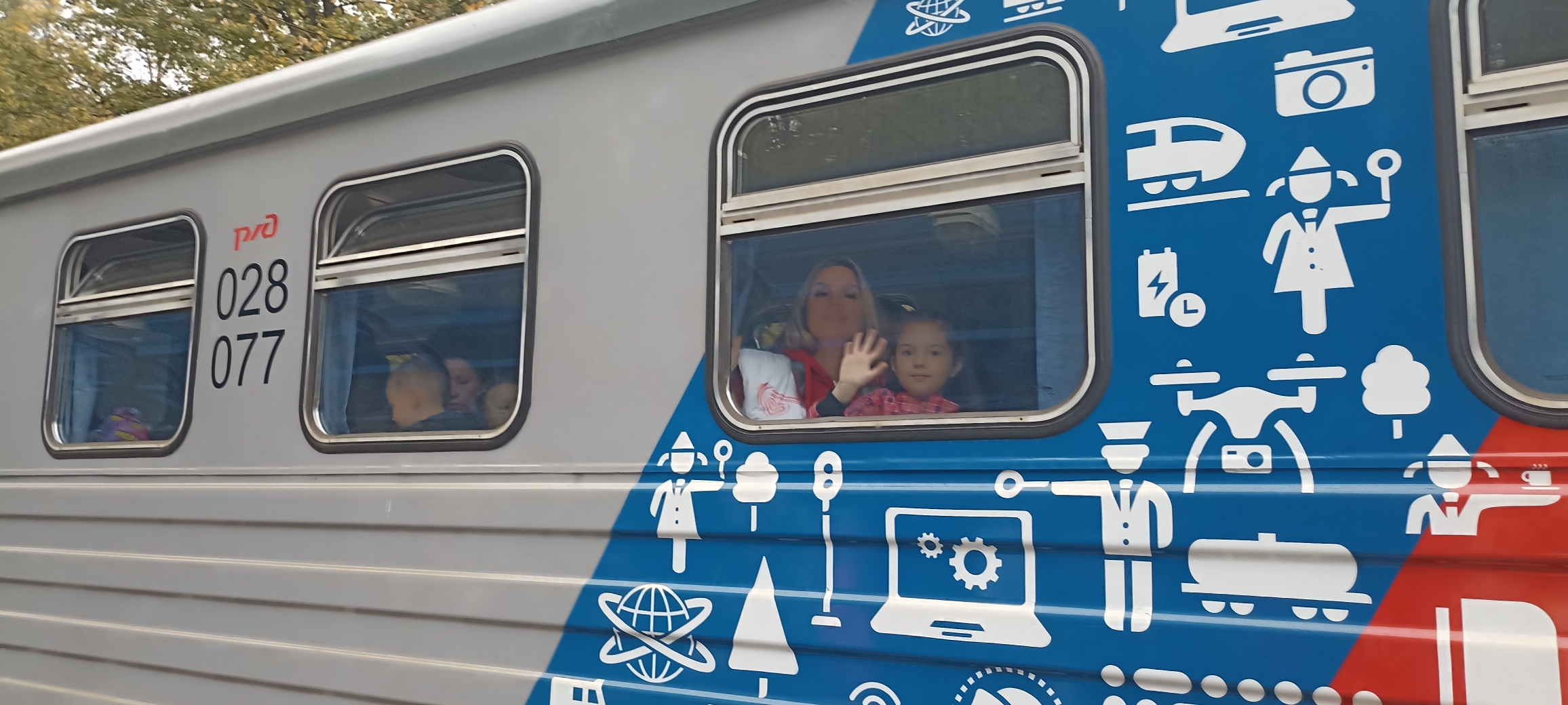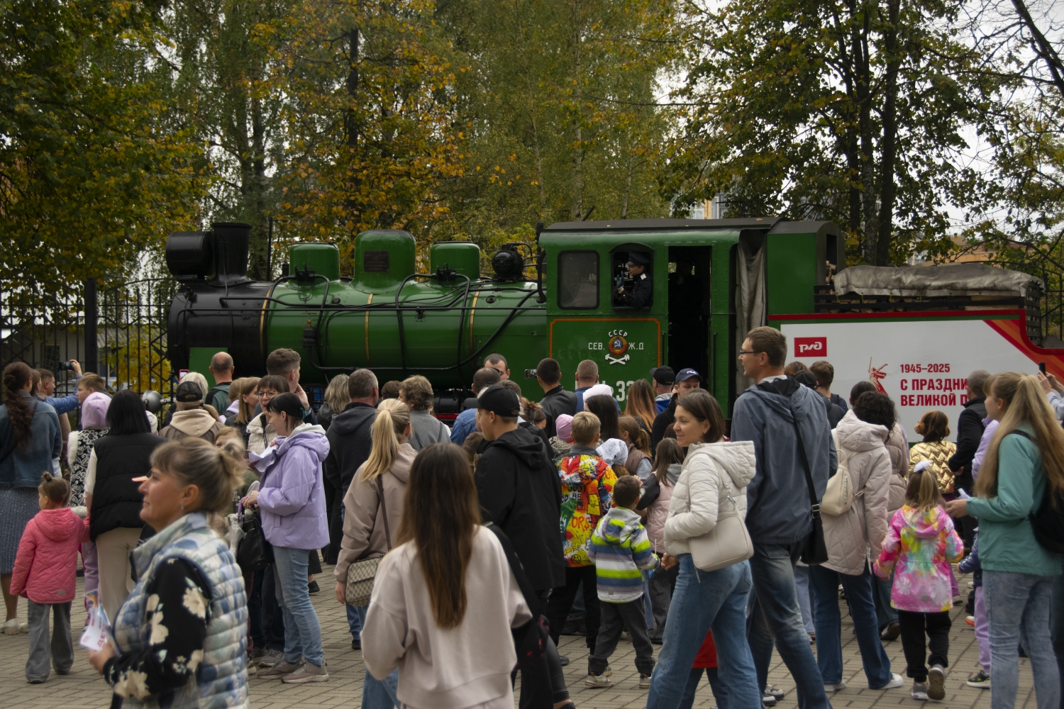 Все желающие могли прокатиться на паровозе, которым управляли юные железнодорожники. В вагонах проводники рассказывали об истории Ярославской детской железной дороги и проводили викторины.