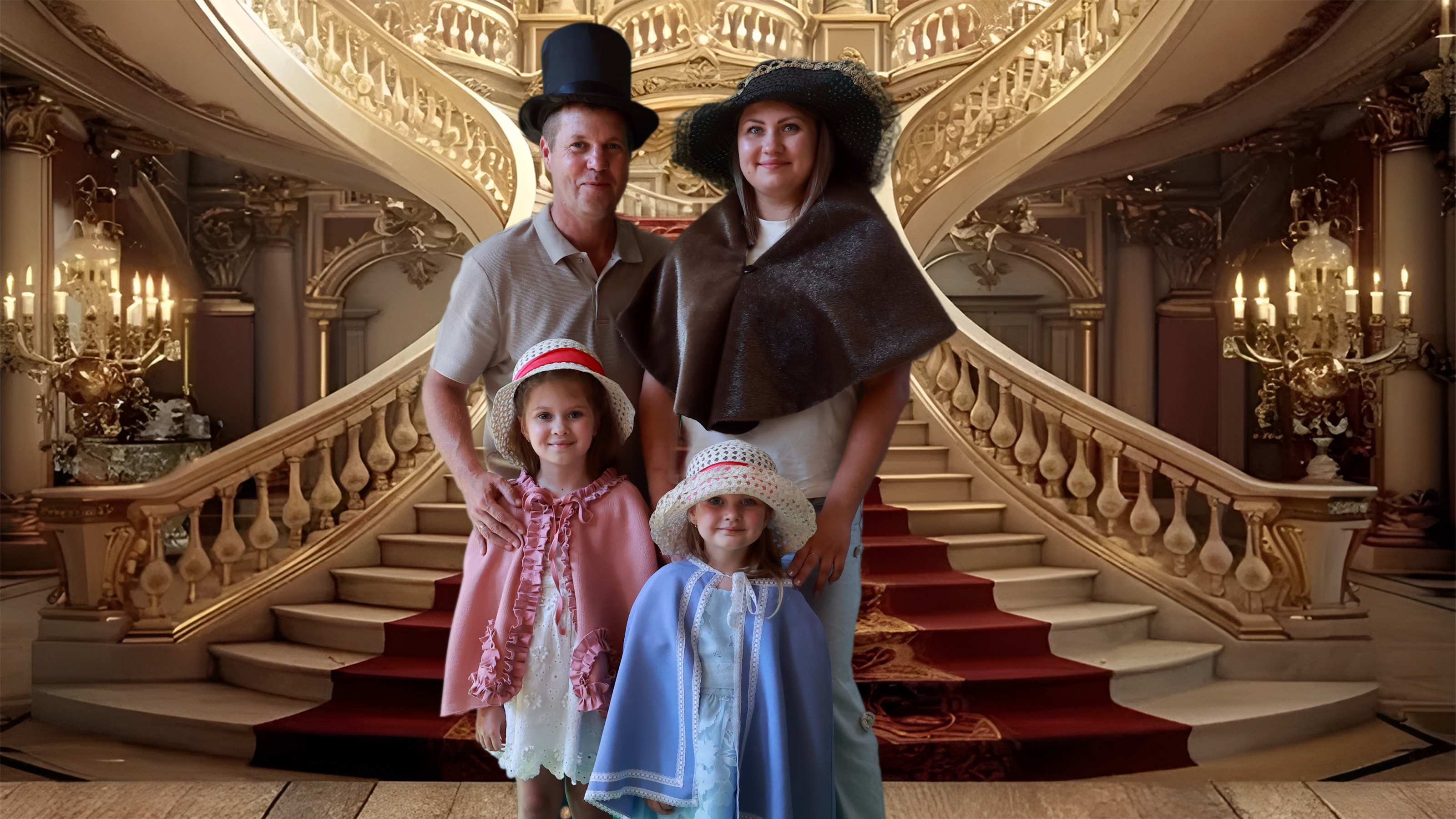 И сегодня мы хотим подробнее рассказать о станции "Семья", где участники создавали креативные фотографии. Семья должна была выбрать элементы предоставленных костюмов и позировать возле зеленого экрана (хромокея). А профессиональный фотограф помогал им в этом и делал снимки. Далее участники подбирали фон, который соответствовал их костюмам. Фоны можно было выбрать из предложенного каталога, разработанного специально для праздника Дорожным центром научно-технической информации и библиотек, и преобразованного с помощью ИИ.