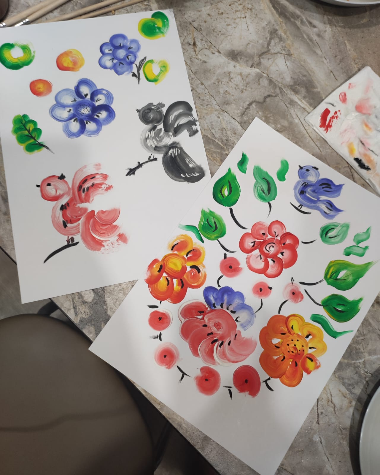 - Очень люблю мастер-классы от Галины. – Поделилась Анна Волкова. - Вчера изучали технику "Роспись уральская", и оформили в этой технике рисунок- семейную мечту. Такая красота получилась, а всего-то гуашь, кисть и особая техника нанесения краски.