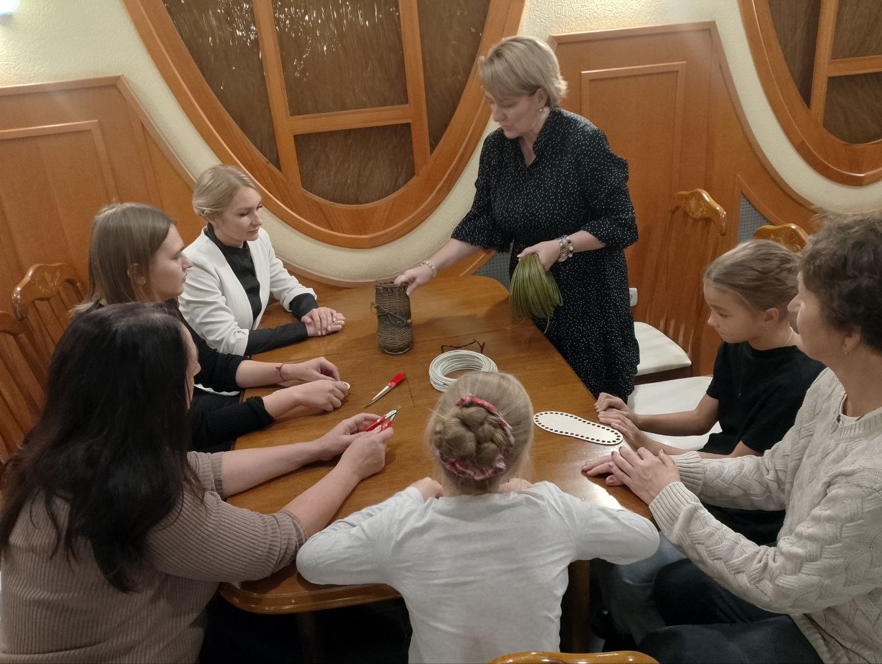 В начале мастер-класса участники узнали о свойствах искусственного ротанга и особенностях работы с ним. Для создания такого кашпо необходим набор материалов: гибкие синтетические прутья разных диаметров, специальный клей, формы для создания основы будущего кашпо.