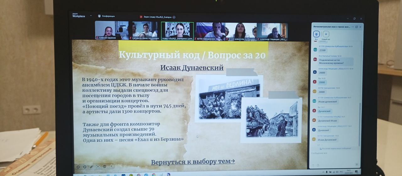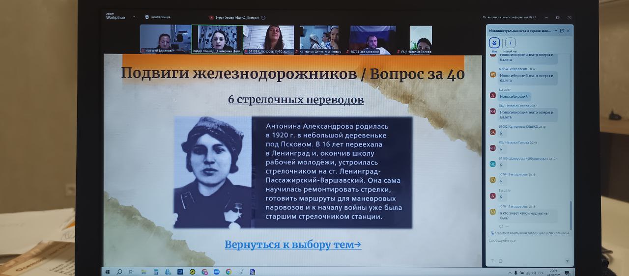В онлайн-пространстве на Куйбышевской железной дороге с успехом прошла интеллектуальная игра "Дорога к Победе. Наследие героев", посвященная беспримерному мужеству и самоотверженности железнодорожников в годы Великой Отечественной войны. Мероприятие стало не просто соревнованием, а настоящим путешествием во времени, позволившим участникам прикоснуться к героическому прошлому страны.