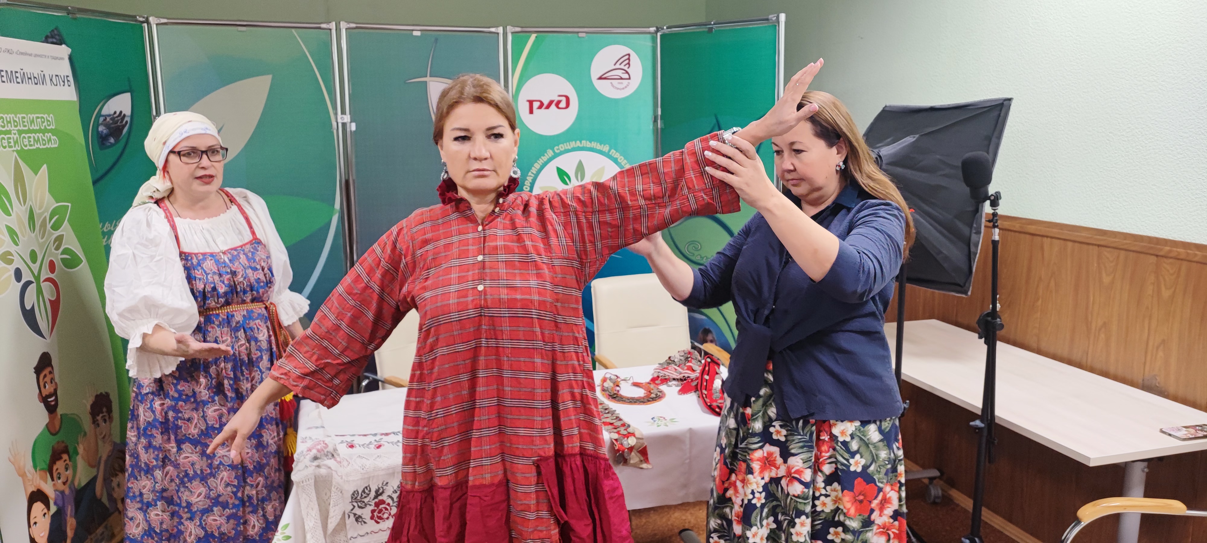 О красоте народного костюма рассказали Галина Комарова, художник-декоратор ДКЖ в г. Челябинске и Екатерина Тельцова, , председатель молодежного отделения – «Молодежной ассамблеи народов Челябинской области» ЧООО Ассоциация национально-культурных объединений «Ассамблея народов Челябинской области».