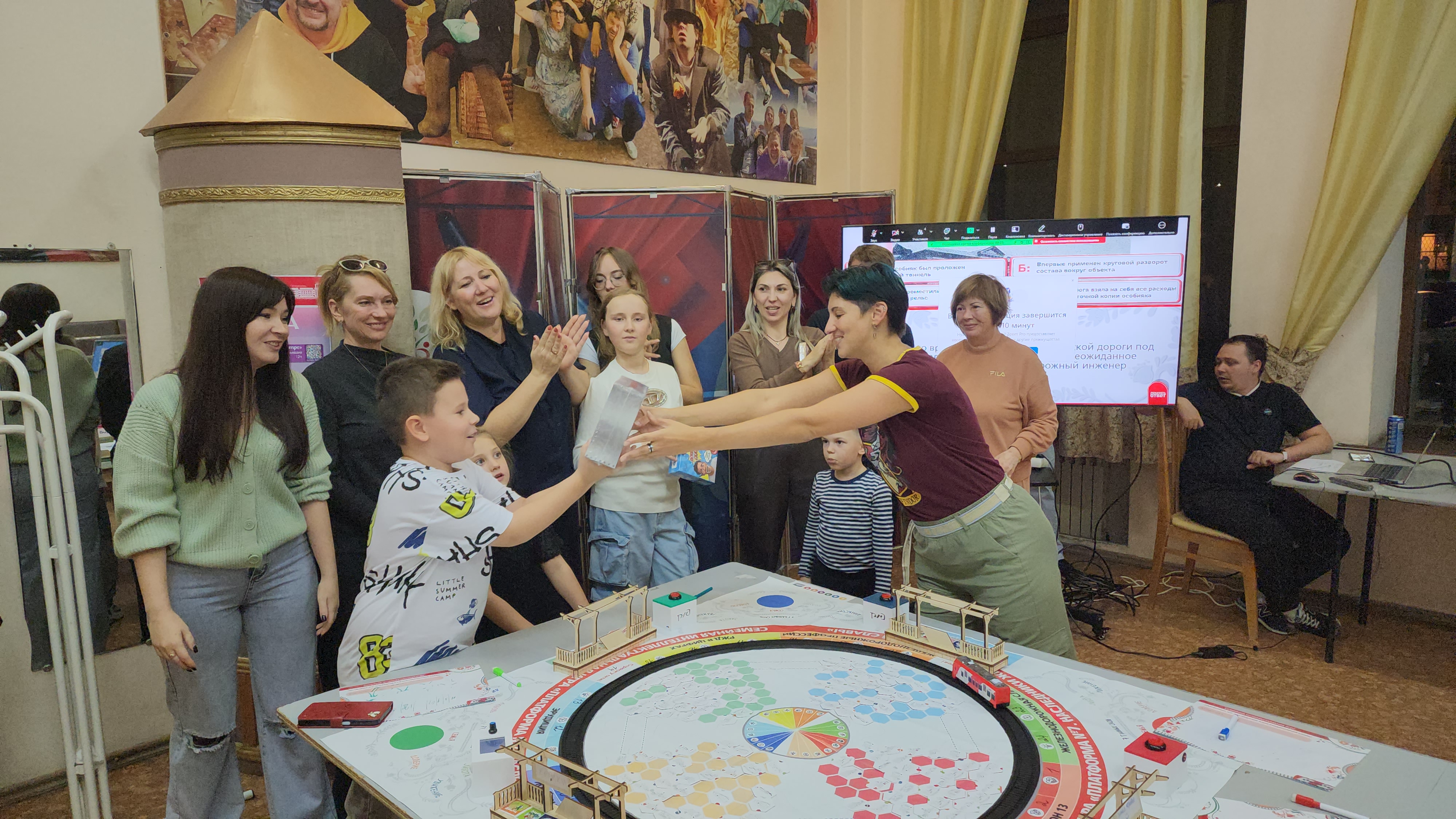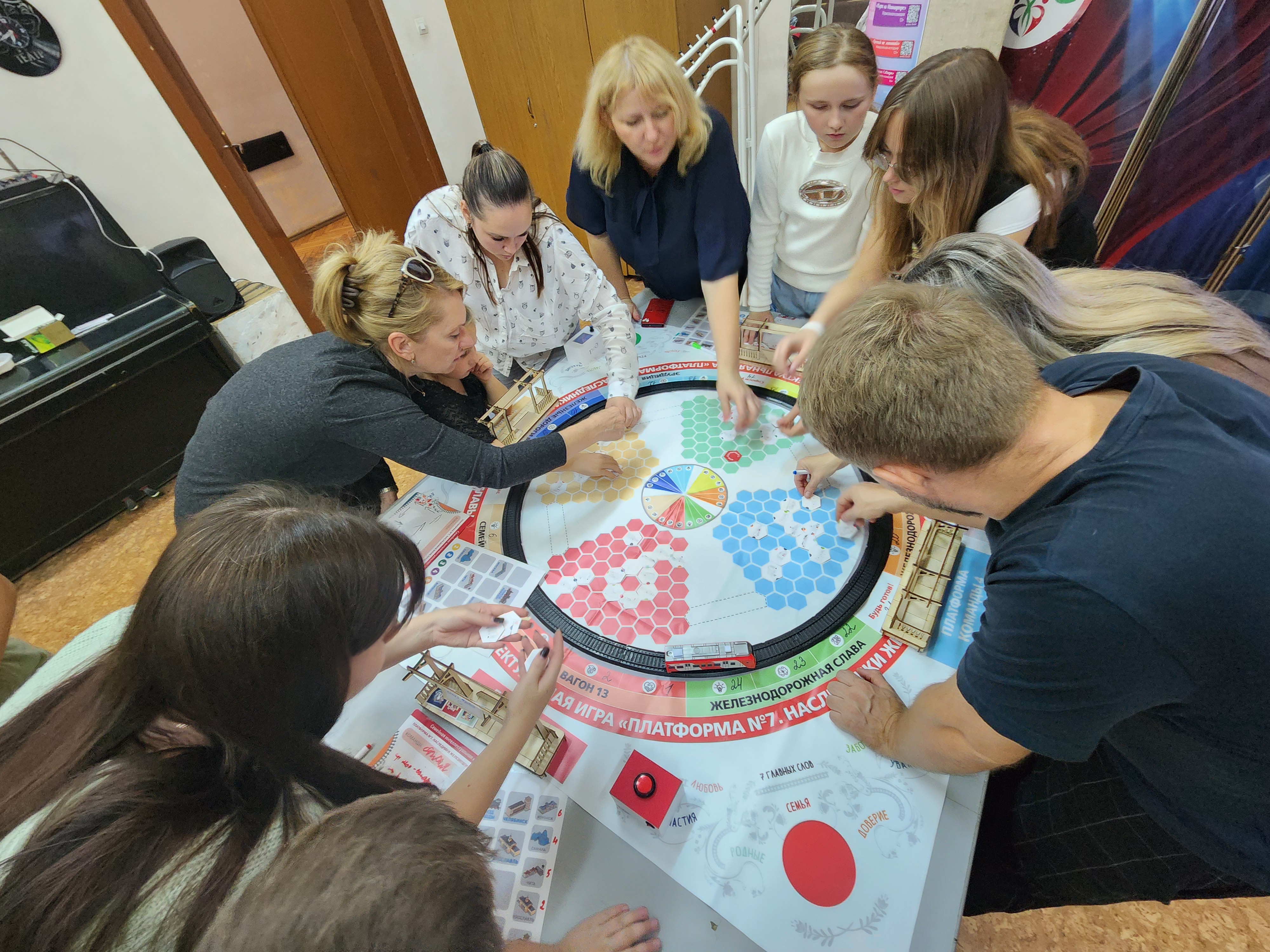 В этот день в уютных стенах клуба собрались четыре семьи железнодорожников, чтобы принять участие в игре офлайн, а также семьи, подключившиеся онлайн из разных уголков региона.