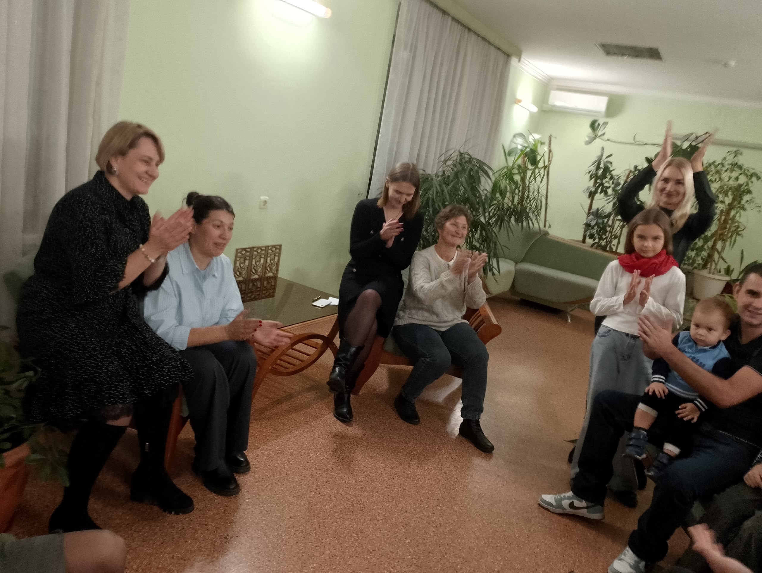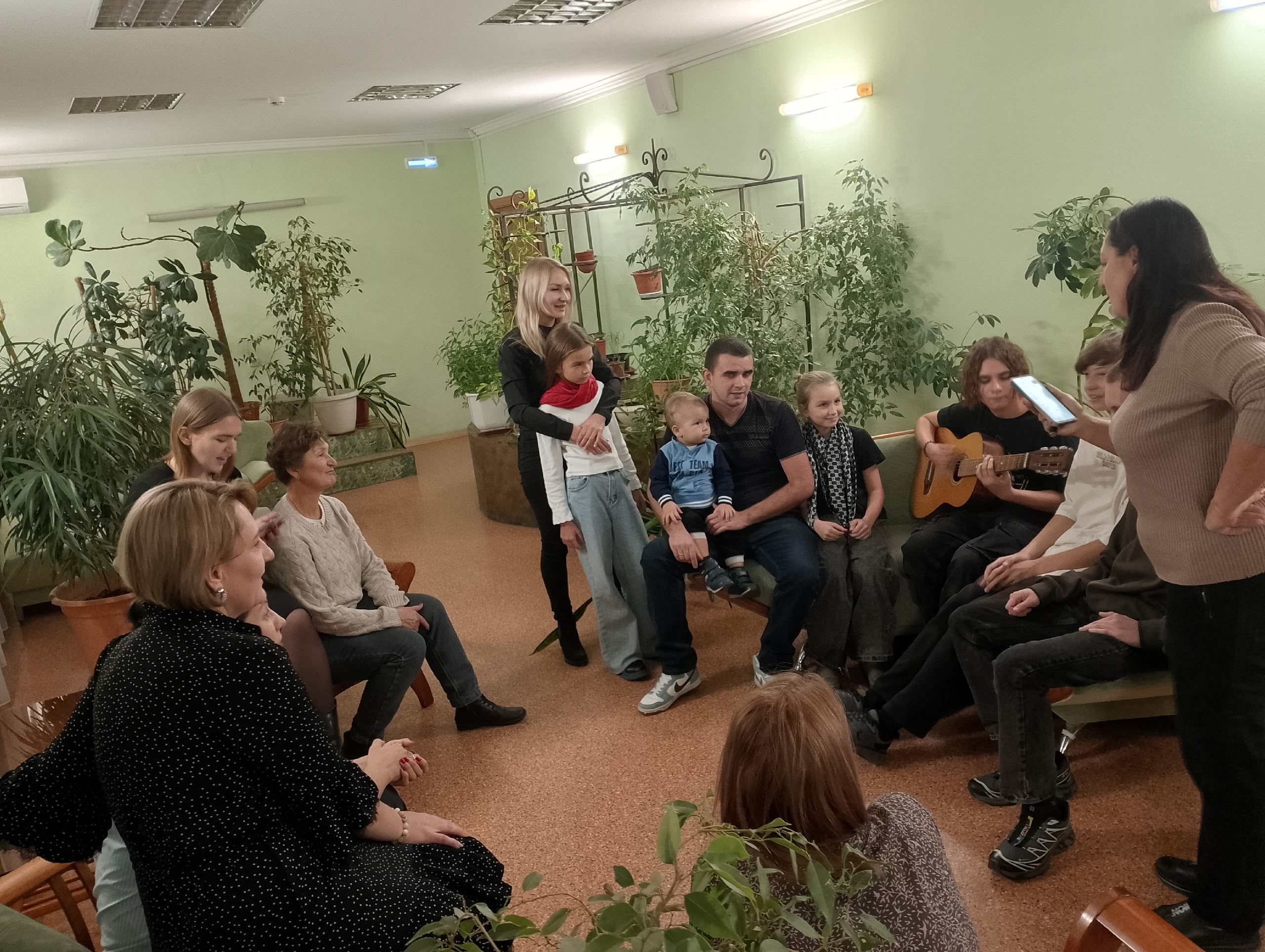 Под сенью живых растений каждая семья по очереди выбирала и исполняла свою особую песню под аккомпанемент сына лидера клуба Артема Чех. Дети, которые впервые участвовали в таком мероприятии, с восторгом слушали семейные истории, связанные с некоторыми песнями. Оказалось, что многие мелодии были саундтреком к важным событиям в жизни семей.