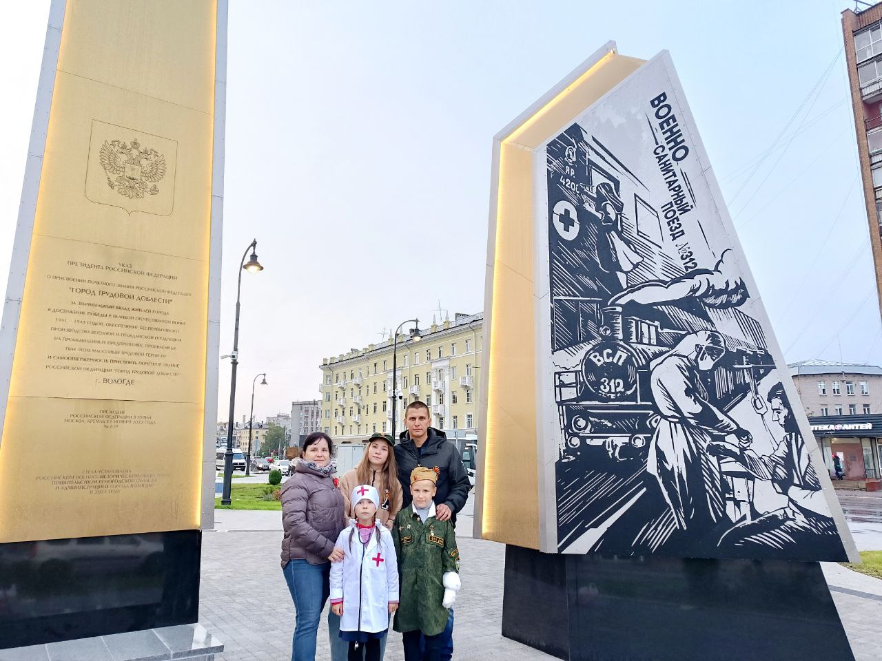 Семья Гудковых рассказала о санитарном поезде № 312 на фоне памятника и поделилась интересными историческими фактами.