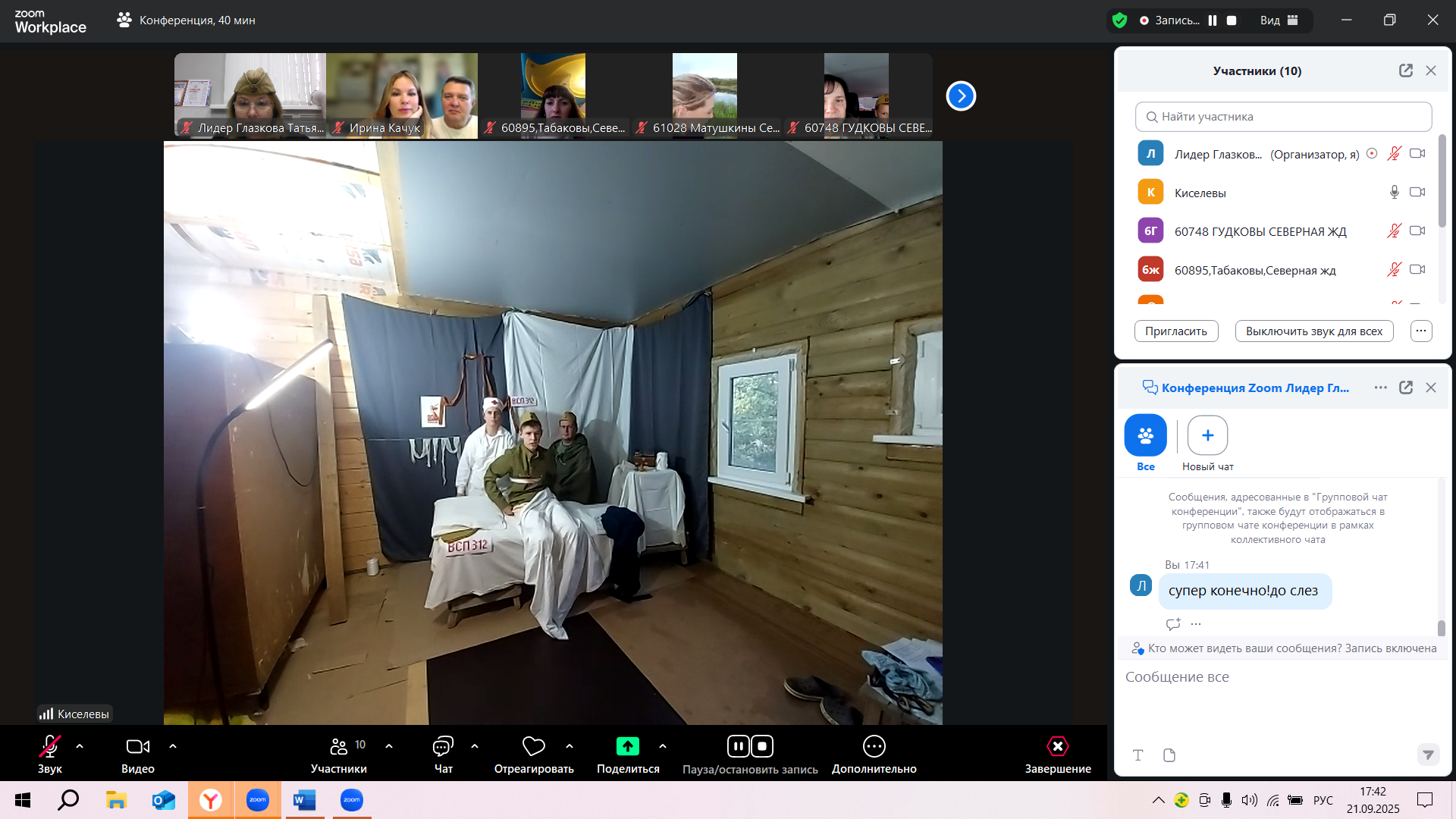 Семья Киселевых поразила своей подготовкой к мероприятию. Их ВСП 312 был настоящим произведением искусства: военная форма, медицинская одежда, тщательно продуманная обстановка, мебель и реквизит — все это погружало в атмосферу того времени. Они прочитали стихотворение о санитарном поезде и рассказали, как с помощью экскурсий удалось создать такую реалистичную инсценировку.