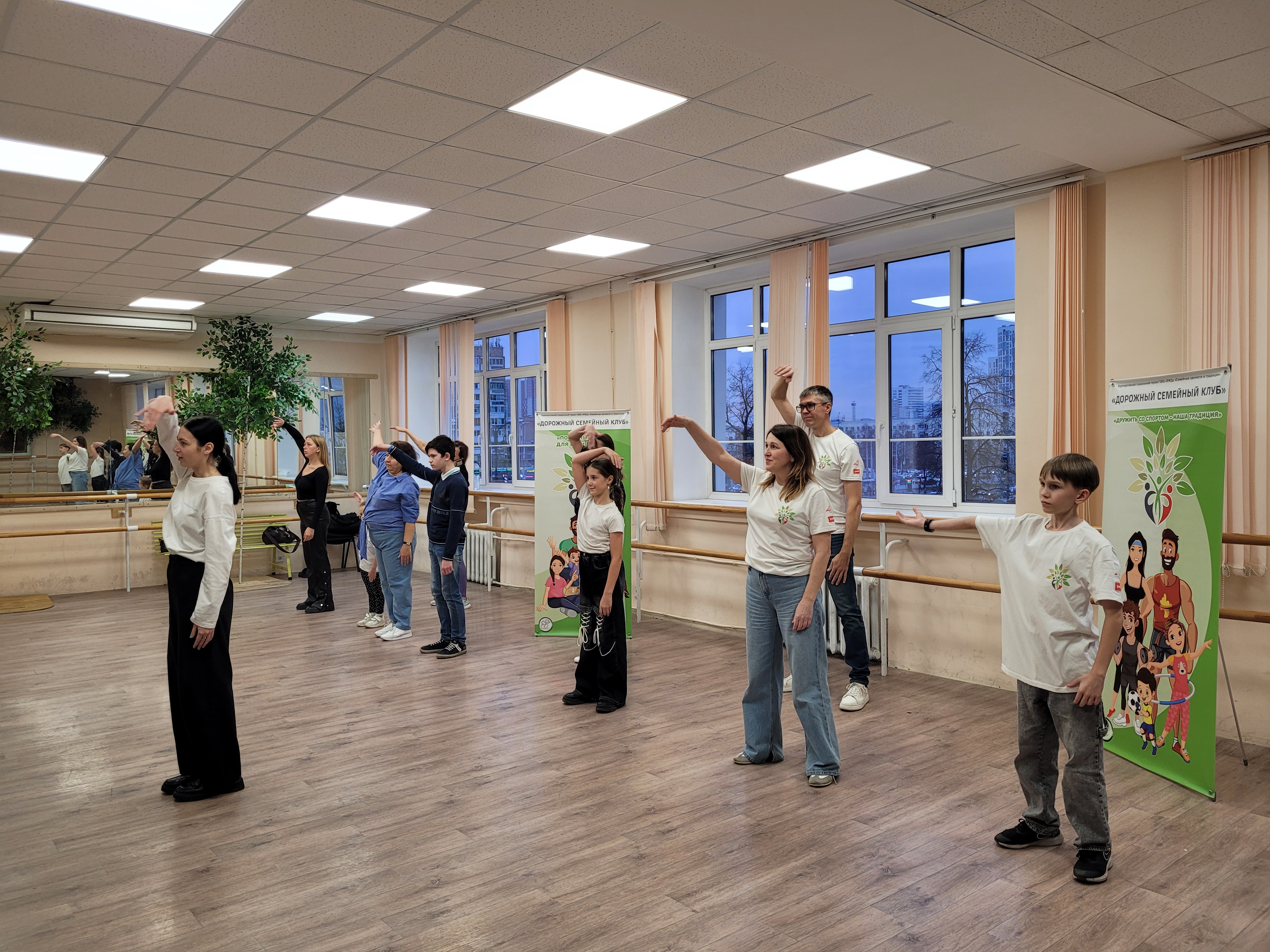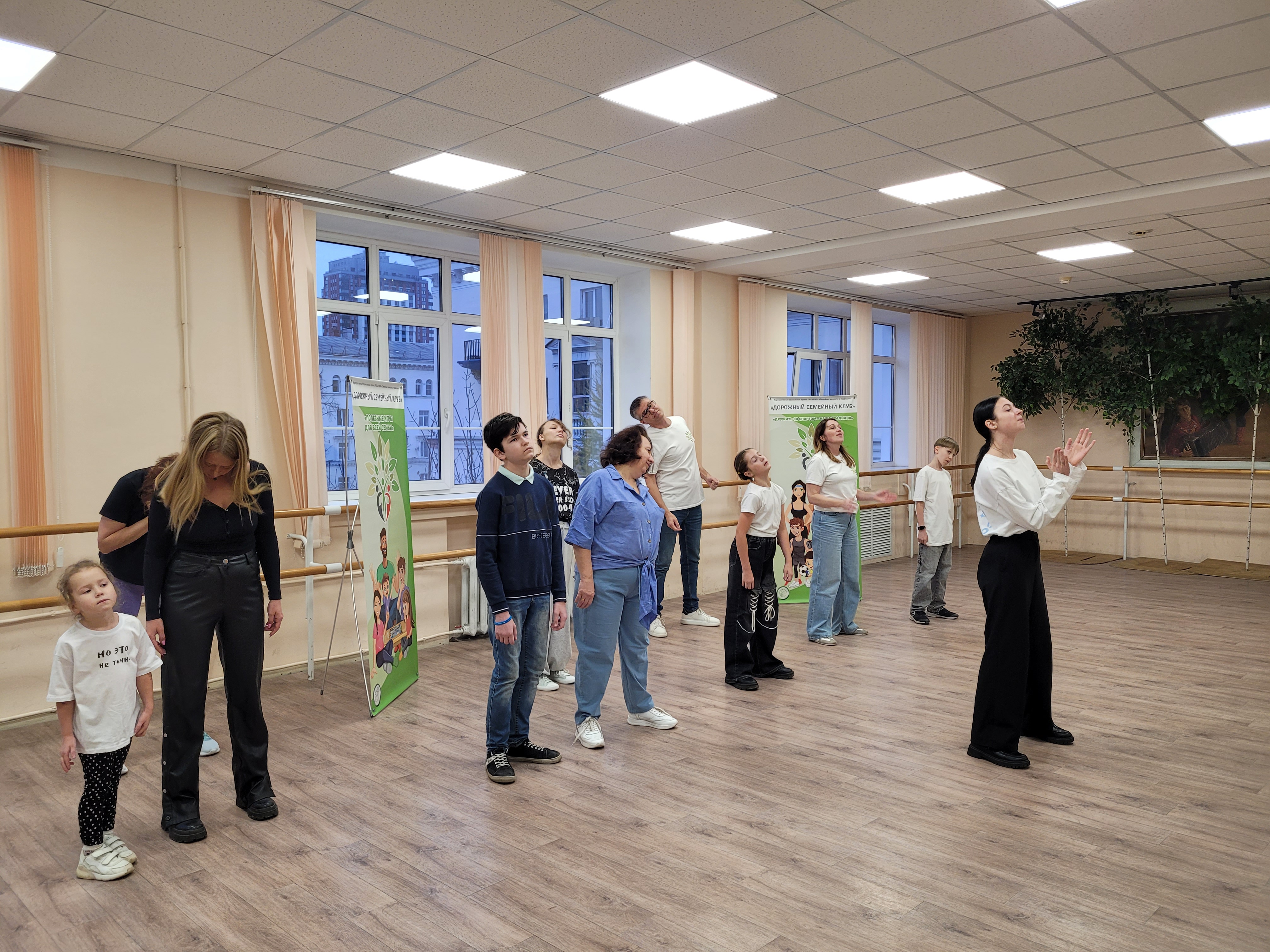 Вместе с хореографом семьи провели разминку, мы выучили танец под зажигательную музыку со смыслом.